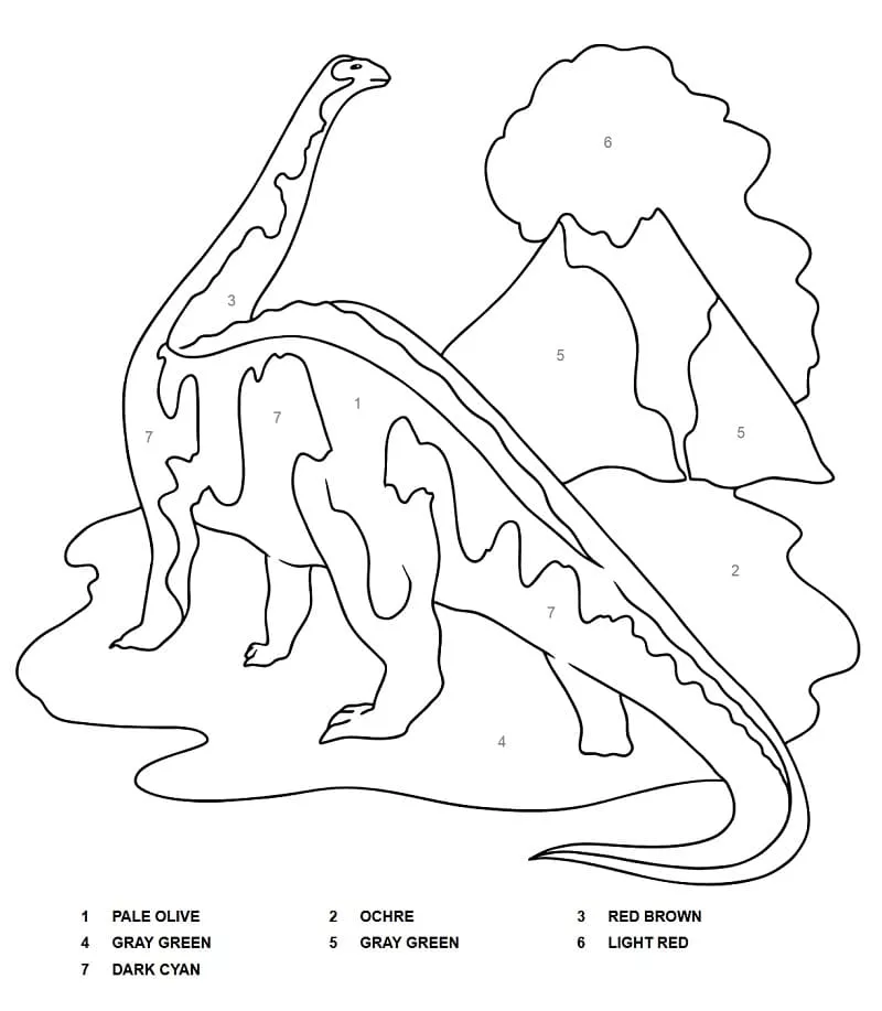 : Druckbar herunterladen Brontosaurus Malen nach Zahlen Malvorlage