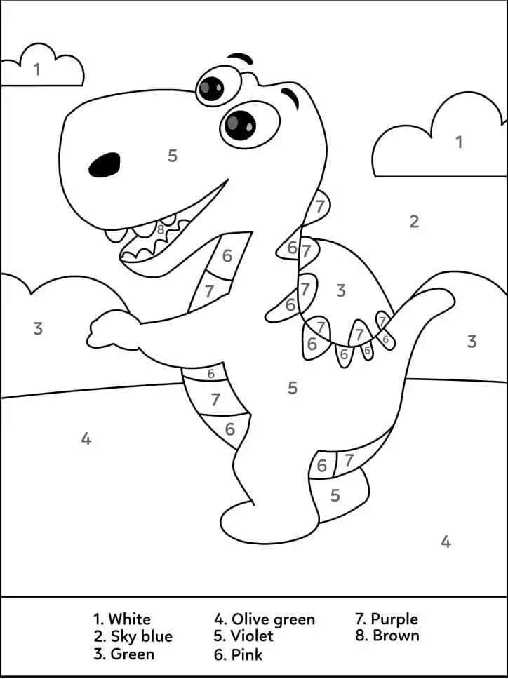 : Druckbar herunterladen Niedlicher T-Rex Malen nach Zahlen Malvorlage