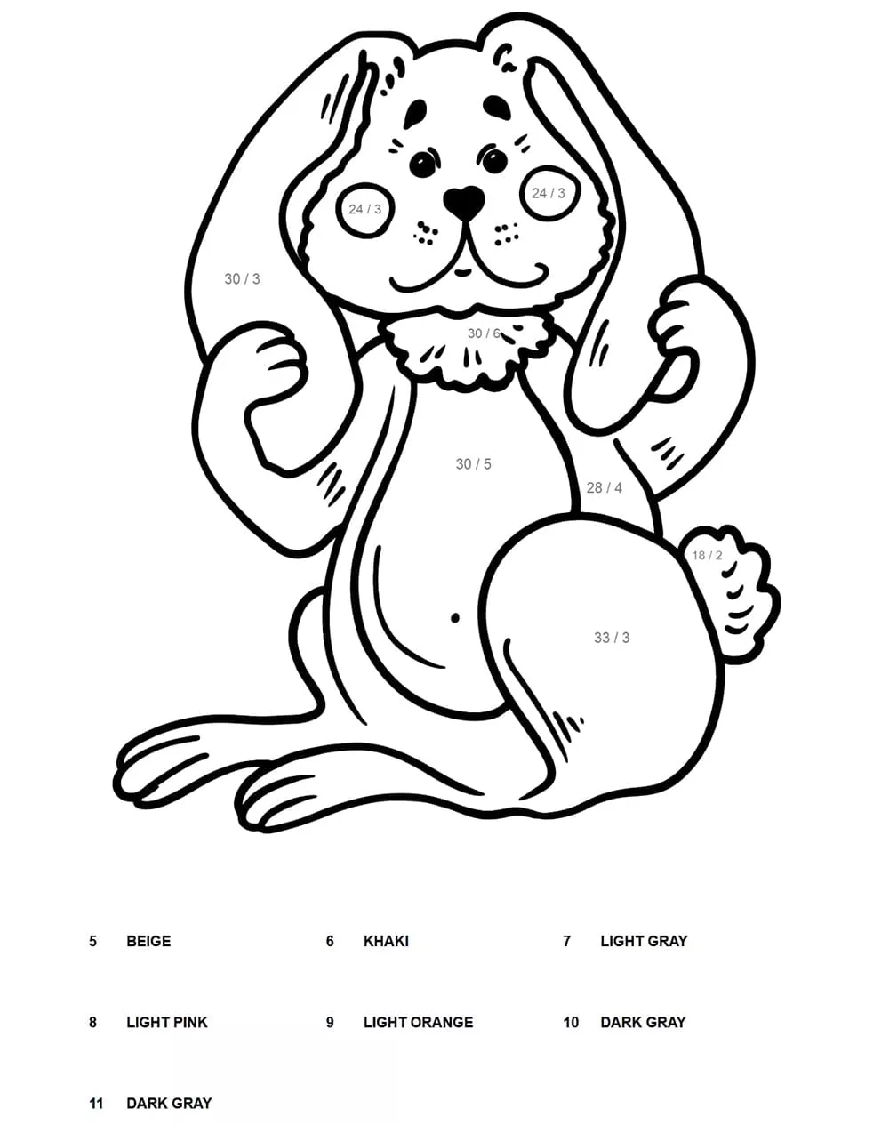 Division Farbe nach Zahlen Malvorlage