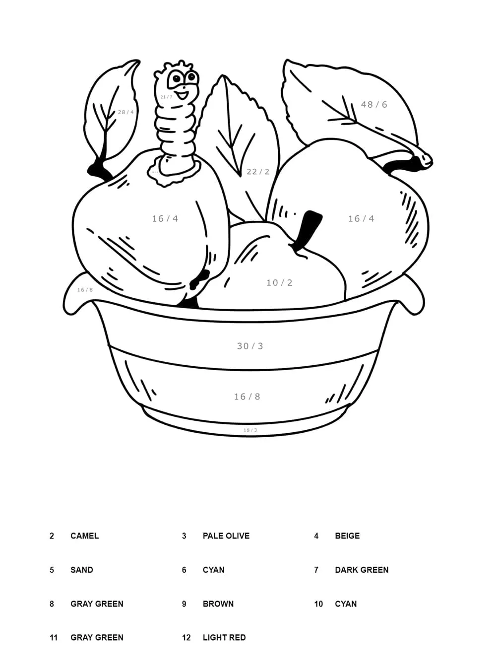 : Druckbar herunterladen Druckbare Teilung Farbe nach Zahl Malvorlage