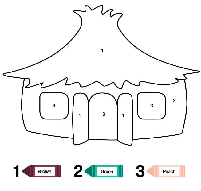 : Druckbar herunterladen Kleines Haus Farbe nach Nummer Malvorlage