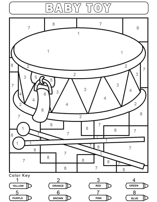 Beschreibung der Färbung : Druckbar herunterladen Babyspielzeug für den Kindergarten Malen nach Zahlen Malvorlage