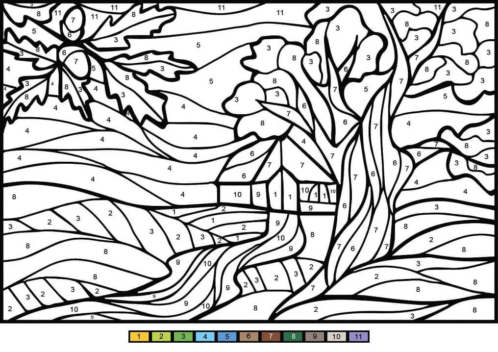 : Druckbar herunterladen Oak Tree Color by Number for Adults Malvorlage