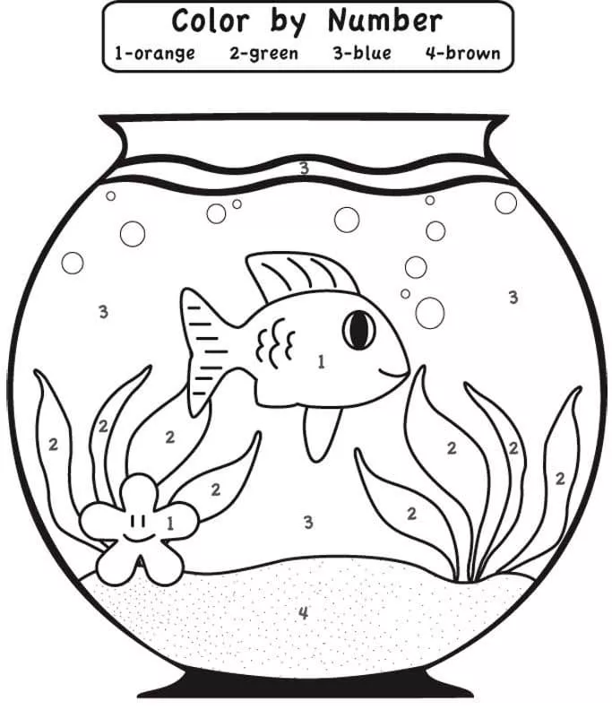 : Druckbar herunterladen Fische im Aquarium Malen nach Zahlen Malvorlage