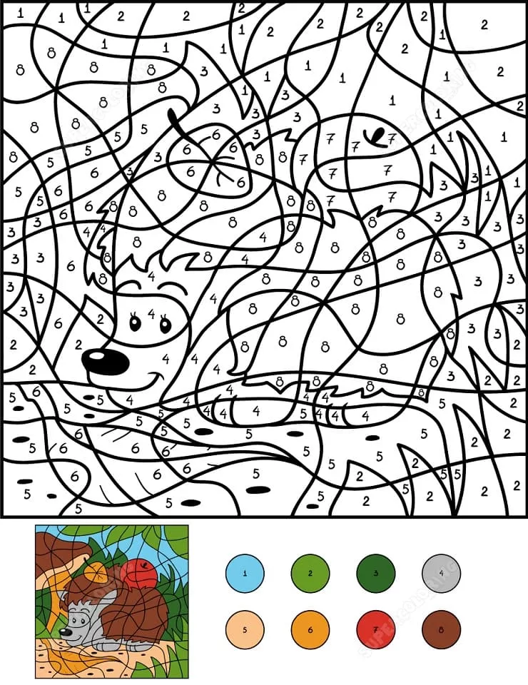 : Druckbar herunterladen Igel Malen nach Zahlen Malvorlage