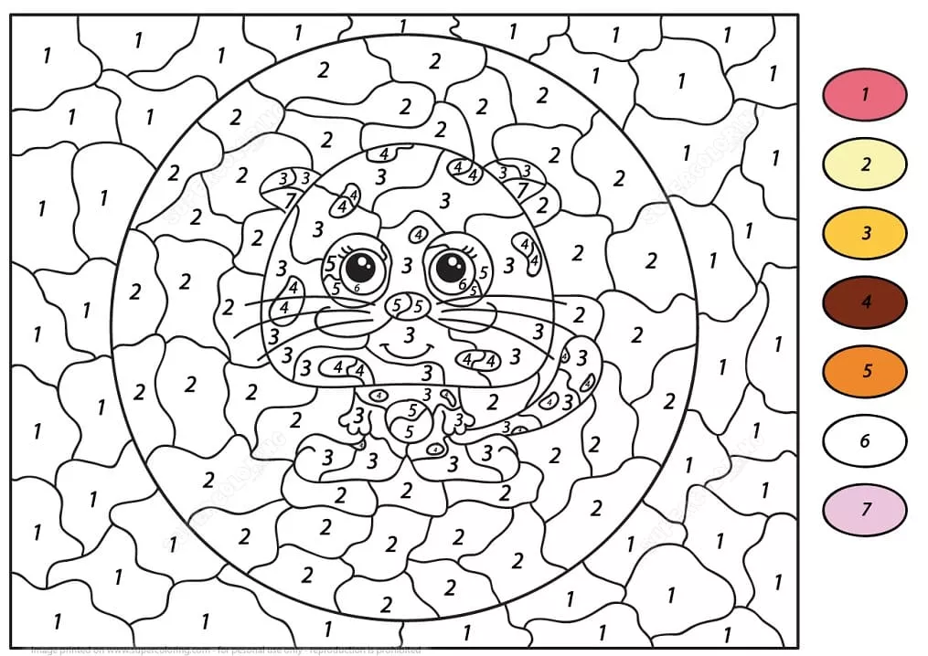 : Druckbar herunterladen Leopard Malen nach Zahlen Malvorlage