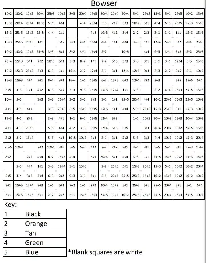 : Druckbar herunterladen Bowser Malen nach Nummer Malvorlage