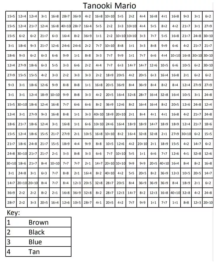 : Druckbar herunterladen Tanooki Mario Malen nach Zahlen Malvorlage
