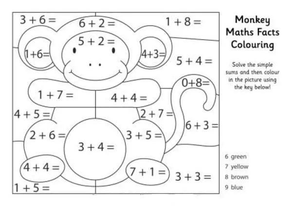 : Druckbar herunterladen Affe Mathe Arbeitsblatt Malvorlage