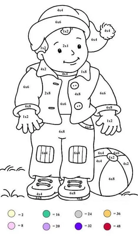 : Druckbar herunterladen Cute Boy Multiplication Color by Number Malvorlage