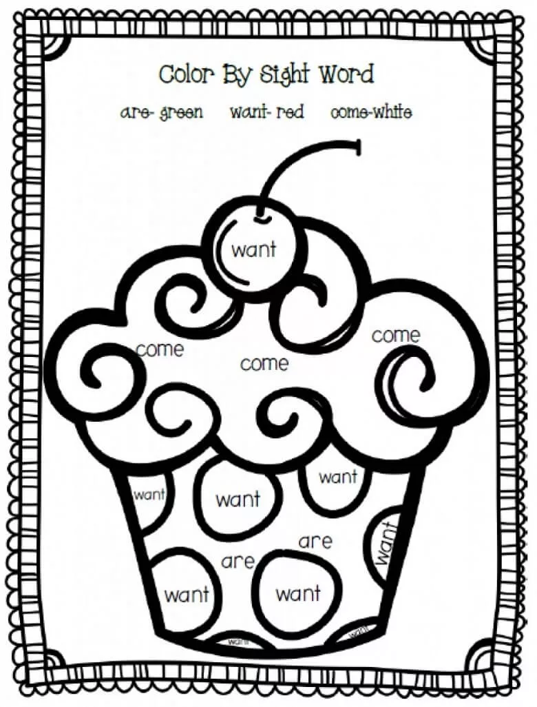 Klicken Sie auf die Schaltfläche Cupcake Sight Wörter Malvorlagen, um die Druckversion anzuzeigen oder online auszumalen (kompatibel mit iPad und Android-Tablets).