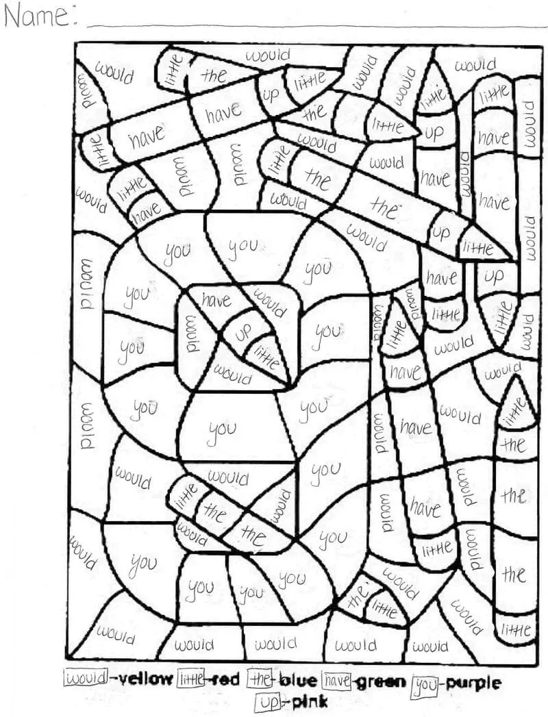 : Druckbar herunterladen Nummer 9 Sichtwörter Malvorlage