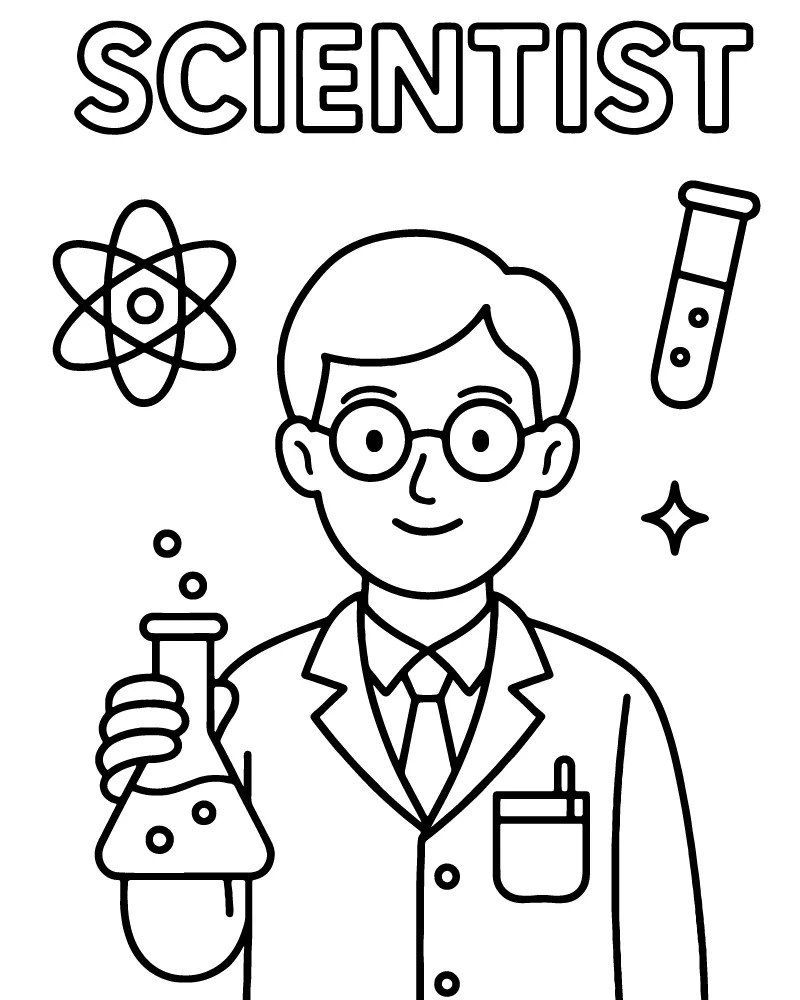 : Druckbar herunterladen Wissenschaftlerin Malvorlage