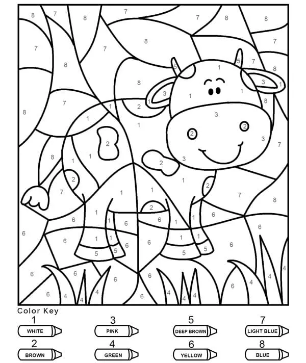 : Druckbar herunterladen Süße Kuh Ausmalen nach Zahlen Malvorlage