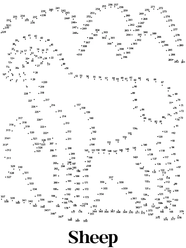 Beschreibung der Färbung : Druckbar herunterladen Schaf Tier Extreme Punkt zu Punkt Ausmalbild Malvorlage