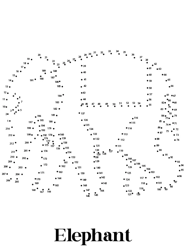 : Druckbar herunterladen Ausmalbild Elefant Tier Punkt zu Punkt Malvorlage