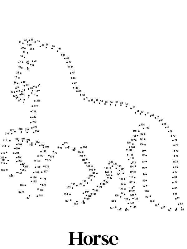 : Druckbar herunterladen Ausmalbild Pferd Tier Punkt zu Punkt Malvorlage