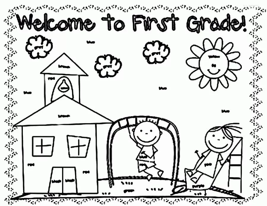 Beschreibung der Färbung : Druckbar herunterladen Druckbar Willkommen in der ersten Klasse Malvorlage