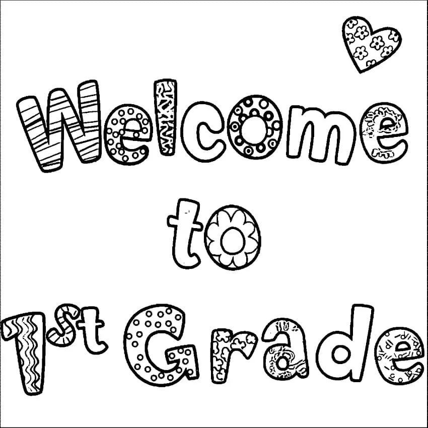 Beschreibung der Färbung : Druckbar herunterladen Kostenlos Willkommen in der ersten Klasse Malvorlage