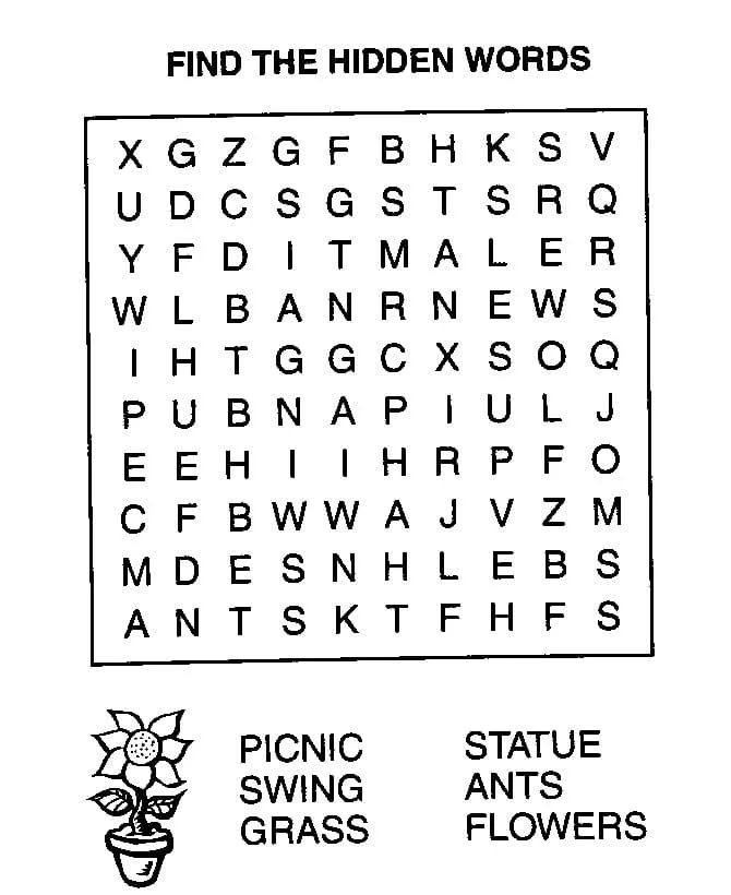 : Druckbar herunterladen Drucken Finden Sie das verborgene Wort Malvorlage