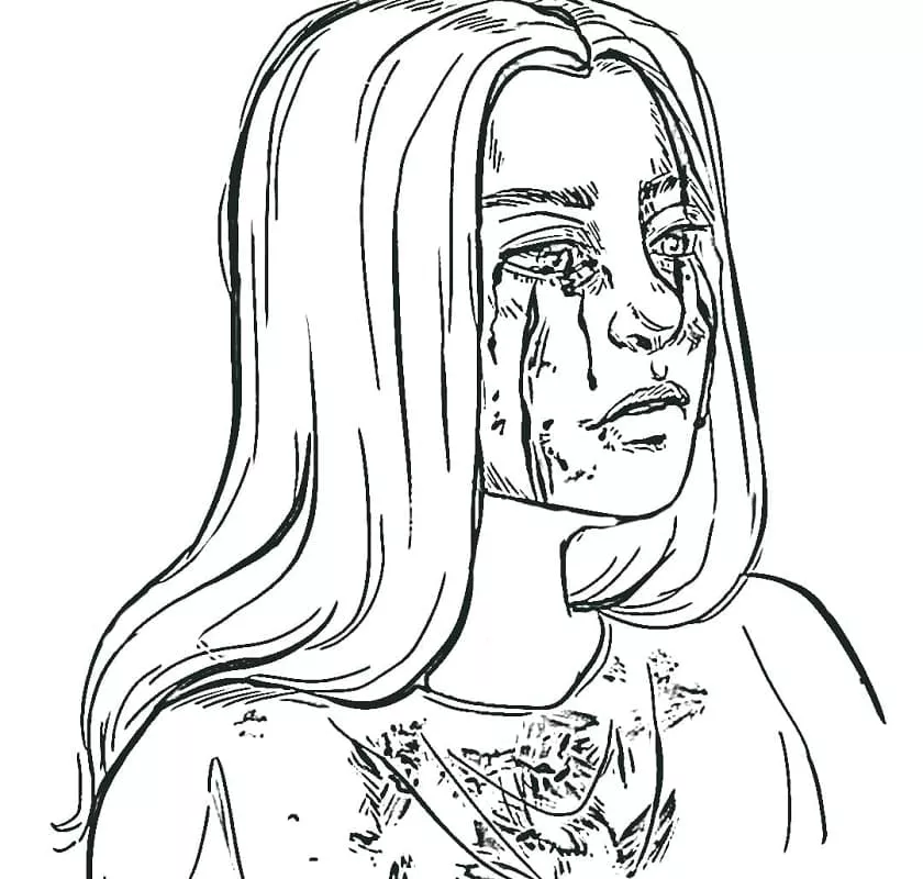 : Druckbar herunterladen Billie Eilish with Black Tears Malvorlage