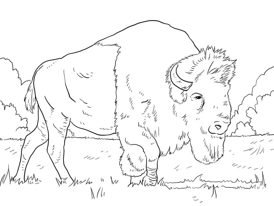 : Druckbar herunterladen Bison Grazing on Grass Malvorlage