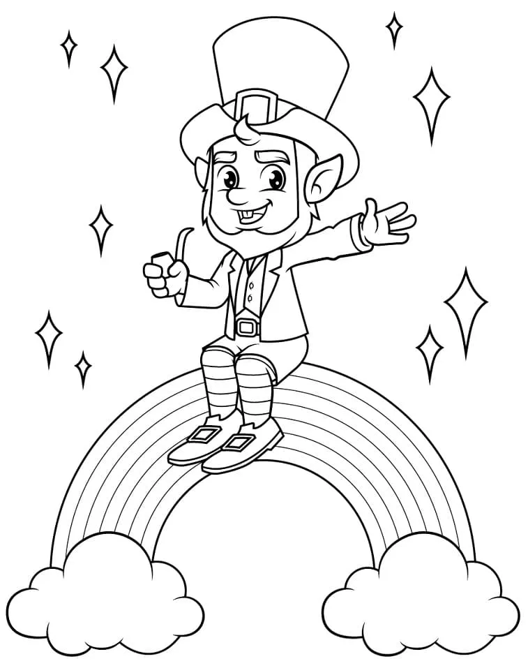 Kobold-Sitz-auf-Regenbogen-Malvorlage