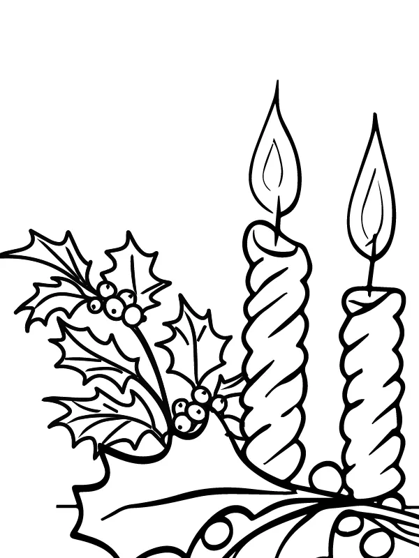 : Druckbar herunterladen Weihnachtsblumen und Kerzen Malvorlage