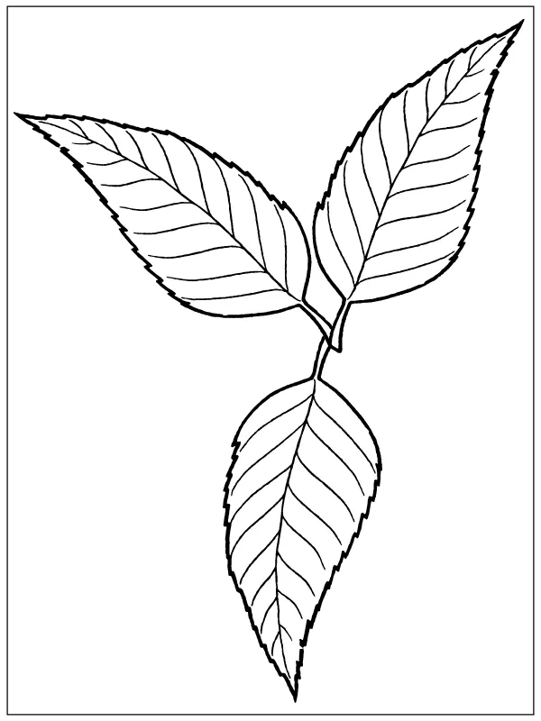 : Druckbar herunterladen Gezahnte Blätter Malvorlage