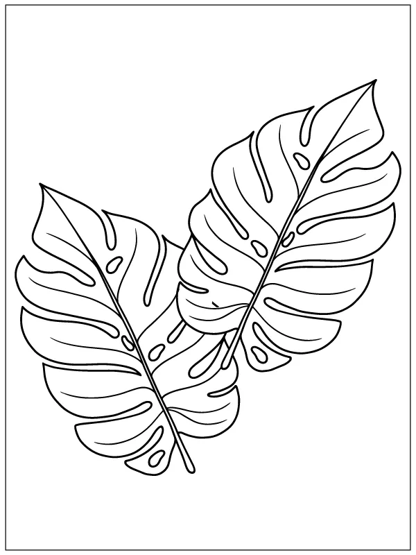 : Druckbar herunterladen Tropische Blätter Malvorlage