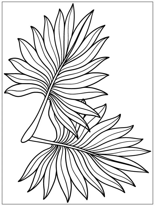 : Druckbar herunterladen Tropische Palmblätter Malvorlage