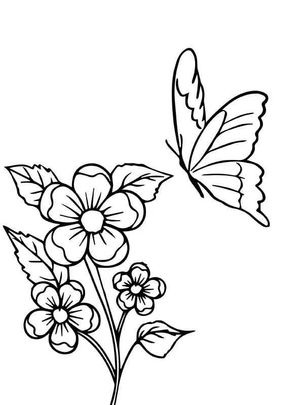 : Druckbar herunterladen Elegante Blumen und Schmetterling Malvorlage