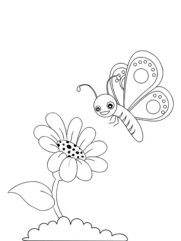 : Druckbar herunterladen Plain Sonnenblume und Schmetterling Malvorlage