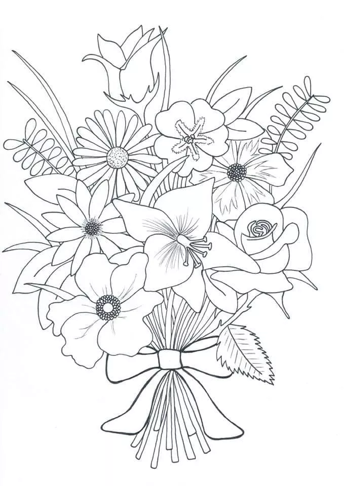 : Druckbar herunterladen Kostenloser Blumenstrauß Malvorlage