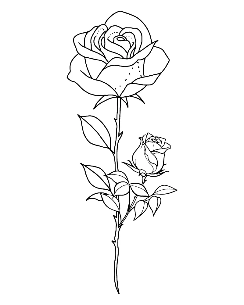 : Druckbar herunterladen Blumige Rose Malvorlage