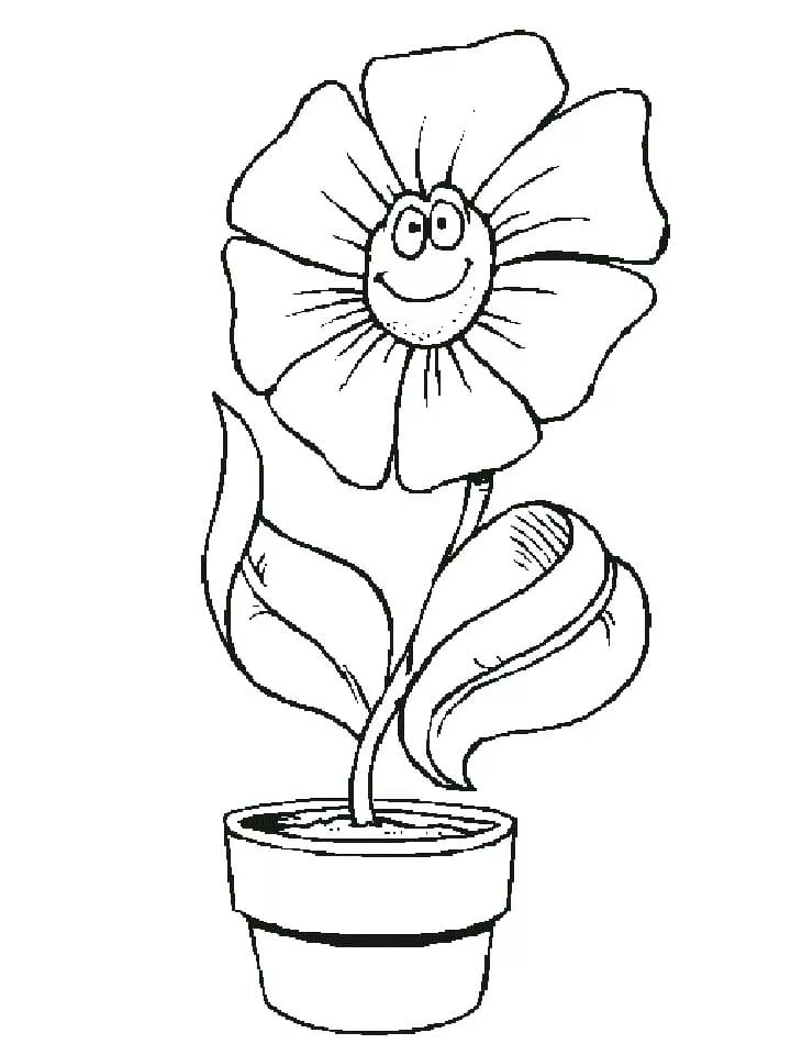 : Druckbar herunterladen Süße Blume im Topf Malvorlage