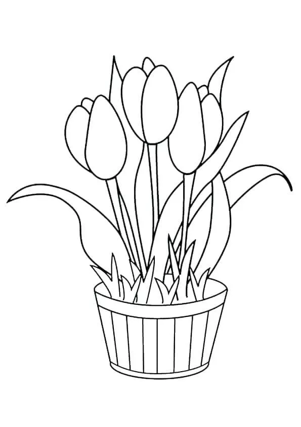 : Druckbar herunterladen Tulpen Blumentopf Malvorlage