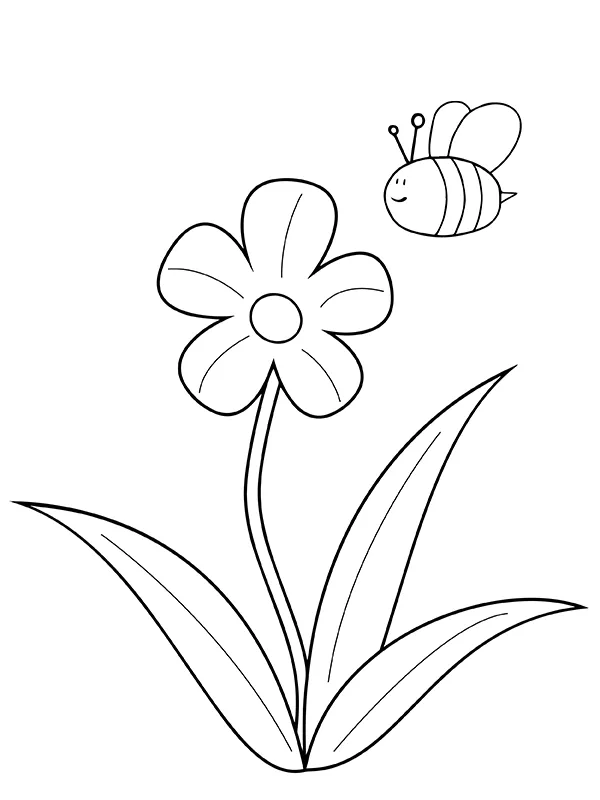 : Druckbar herunterladen Einfache Blume und Schmetterling Malvorlage