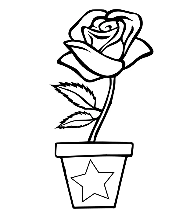 : Druckbar herunterladen Rose in Flower Vase Malvorlage