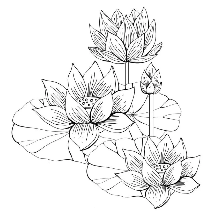 : Druckbar herunterladen Druckbare Lotusblumen Malvorlage
