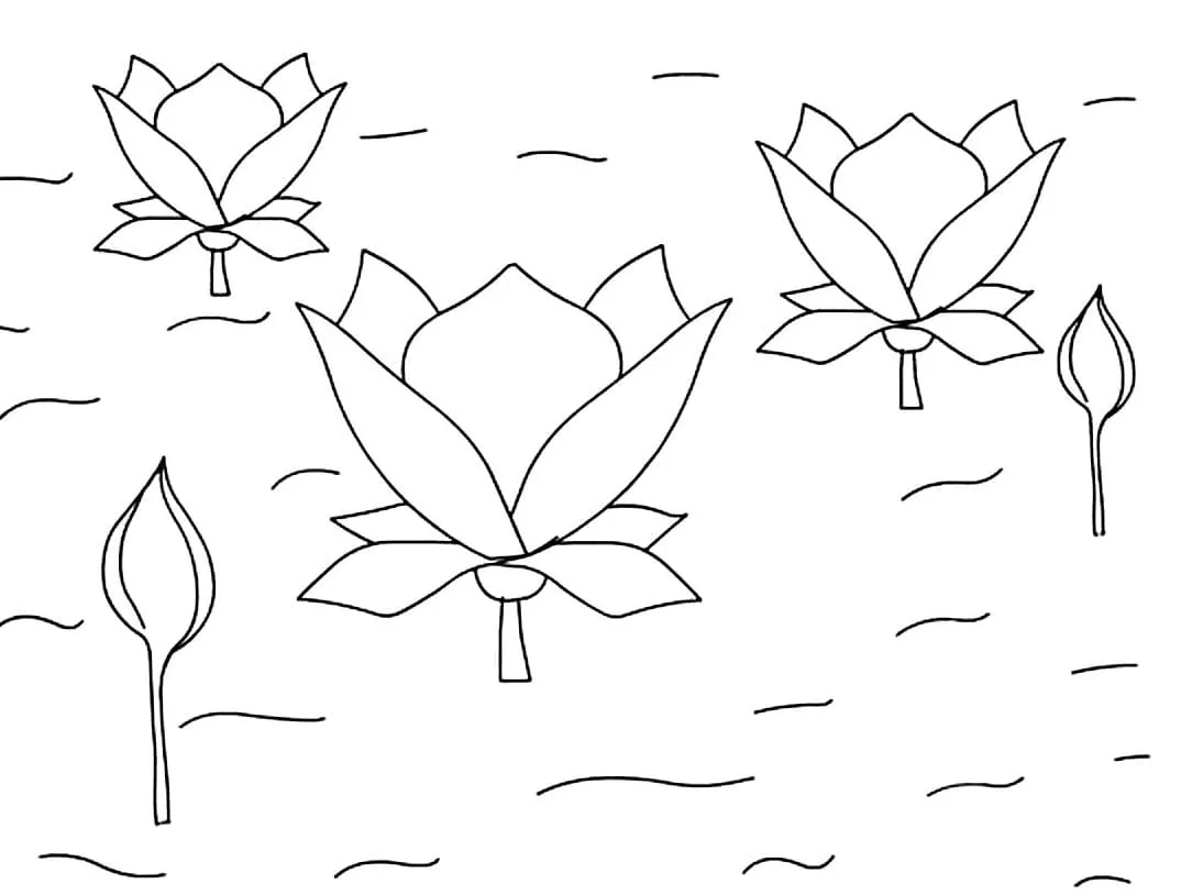: Druckbar herunterladen Lotusblumen Malvorlage