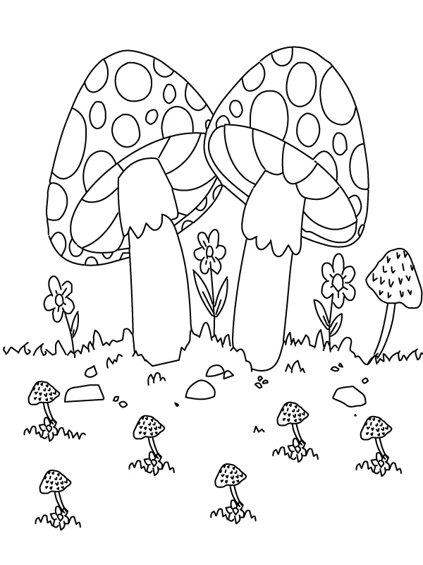 Druckbare niedliche Pilzkunst zum kreativen Ausmalen