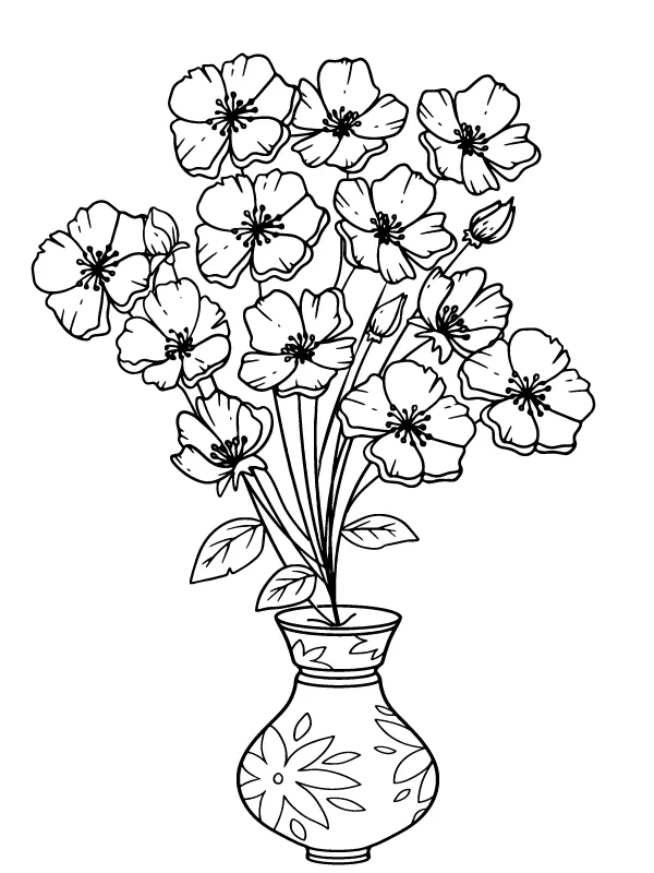 : Druckbar herunterladen Petunia Blumenvase Malvorlage