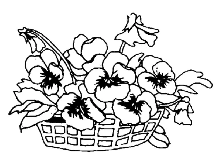 : Druckbar herunterladen Stiefmütterchen Korb Malvorlage