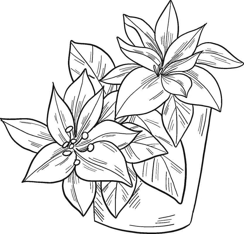 : Druckbar herunterladen Weihnachtsstern im Topf Malvorlage