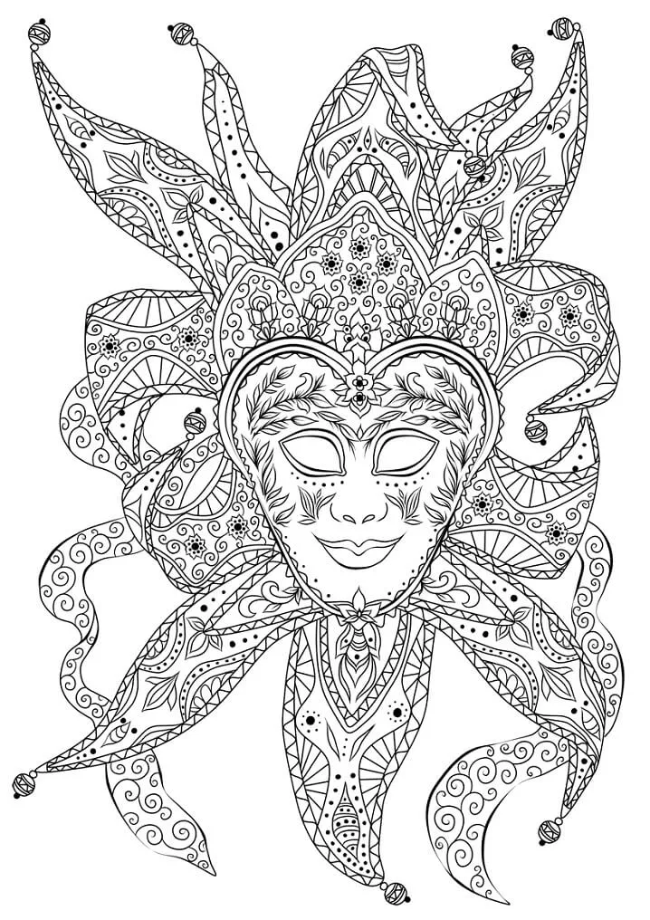 : Druckbar herunterladen Bouffon Venetian Mask Mardi Gras Malvorlage