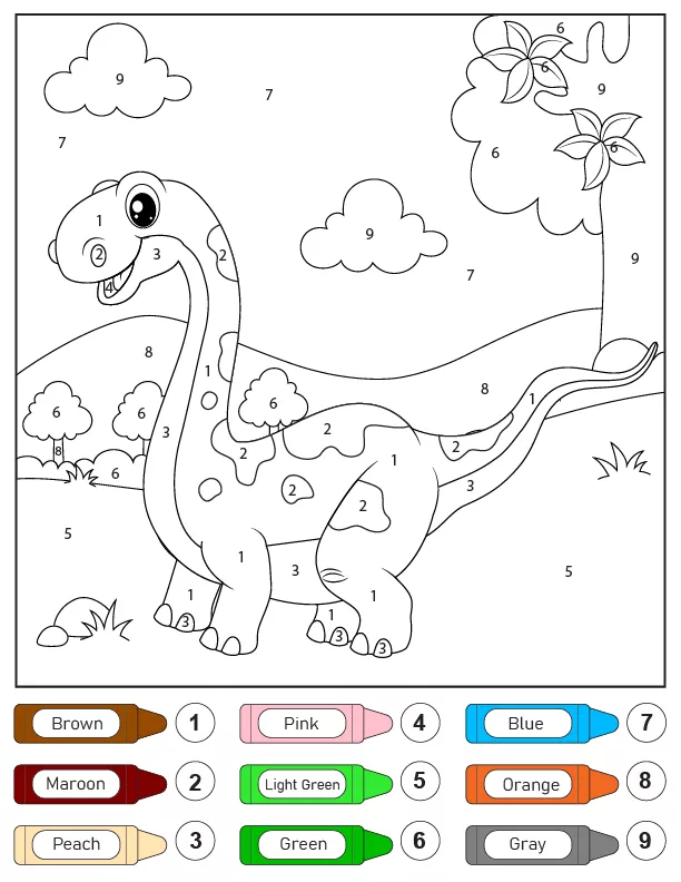 Brachiosaurus Dinosaur Color by Number