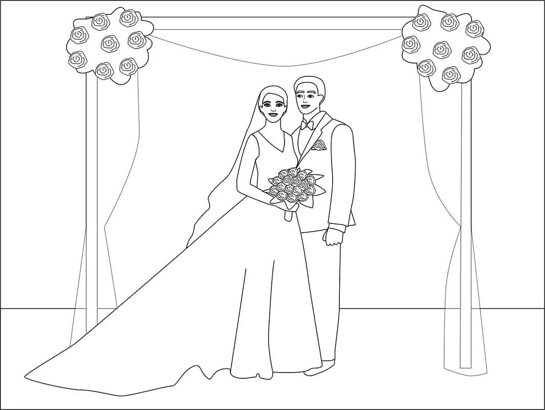 : Druckbar herunterladen Bride and Groom 1 Malvorlage