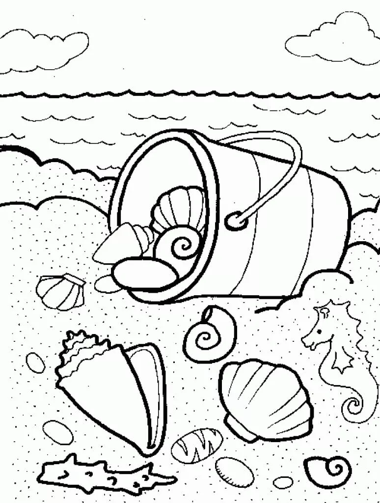 : Druckbar herunterladen Bucket of Seashells Malvorlage