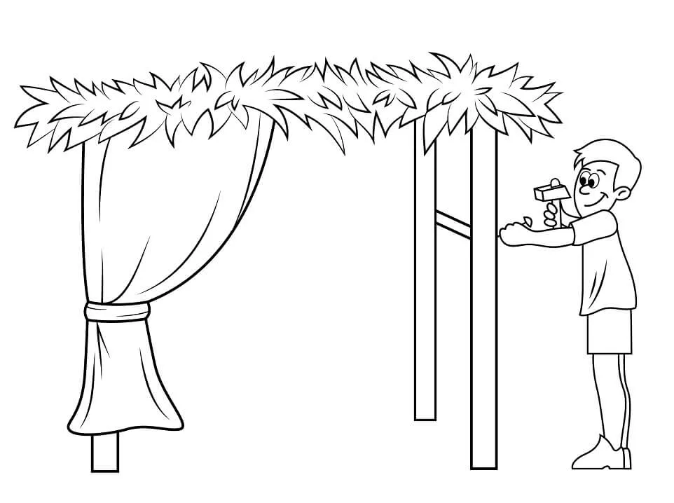 : Druckbar herunterladen Building a Sukkah for Sukkot Malvorlage